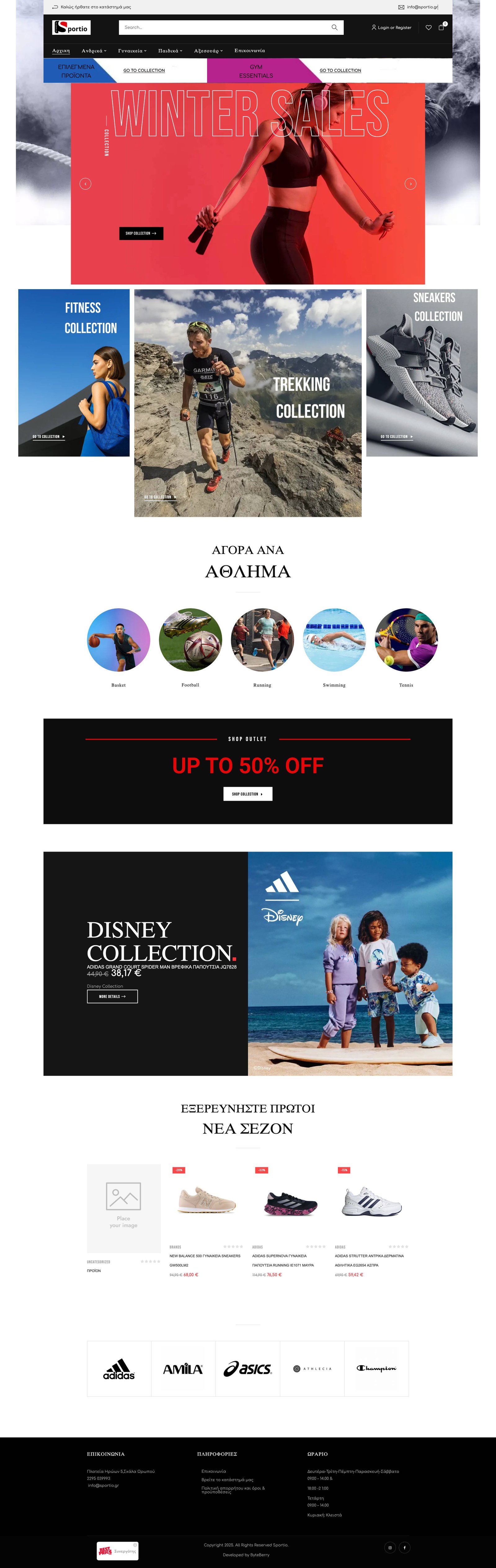 E-shop εμπειρία για κατάστημα αθλητικών ειδών με οργανωμένες κατηγορίες, ταχύτερη πλοήγηση και conversion-focused checkout.